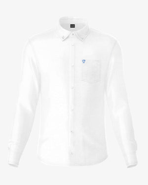 Camisa Antimanchas Popelina Blanco con Bolsillo Logo Azul- Talla Regular
