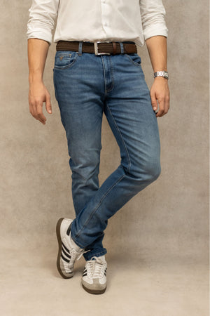 Este jean elástico es la prenda esencial para el hombre que busca el balance entre lo clásico y lo funcional.